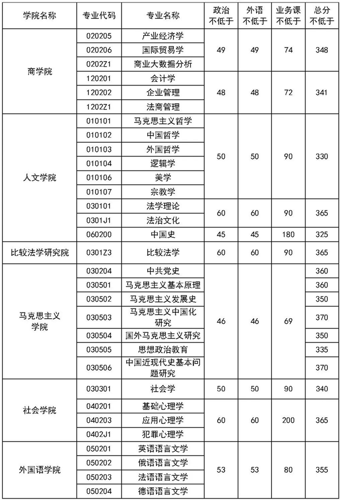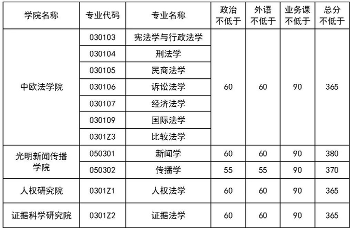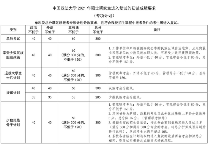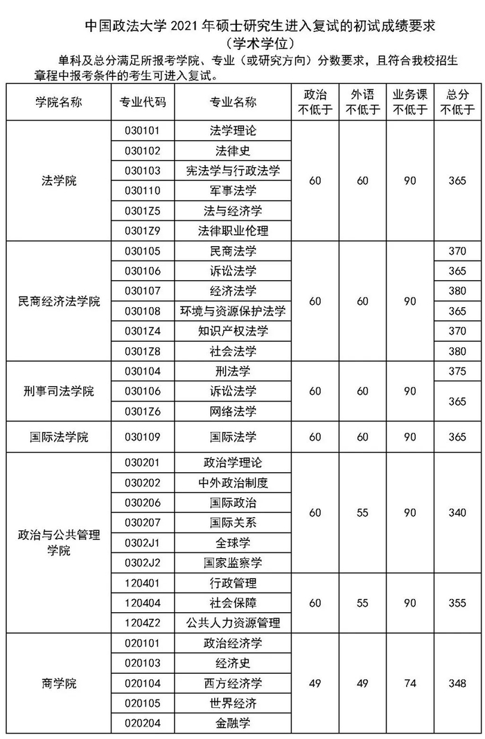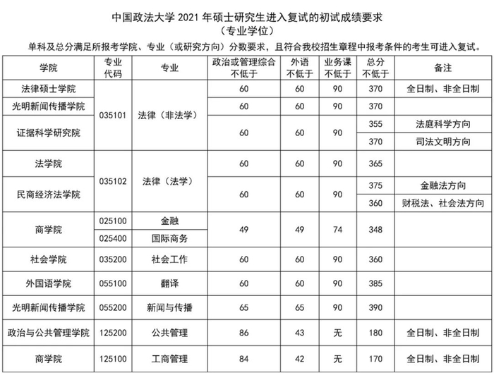 中国政法大学关于公布2021年硕士研究生复试分数线的通知