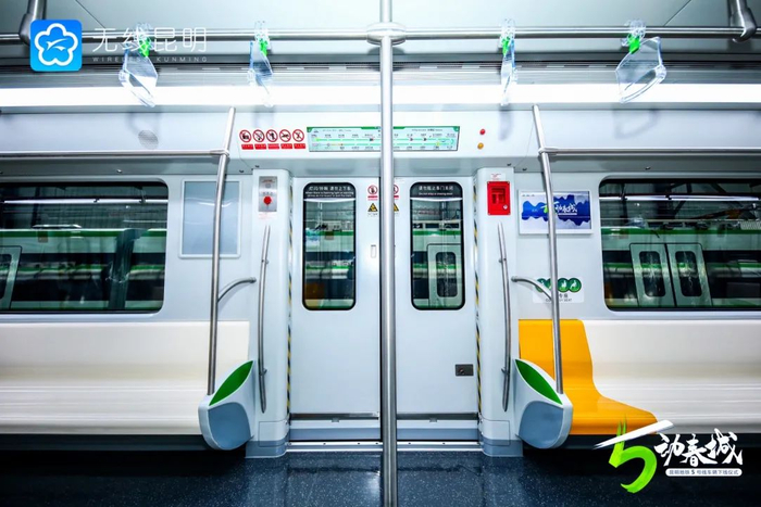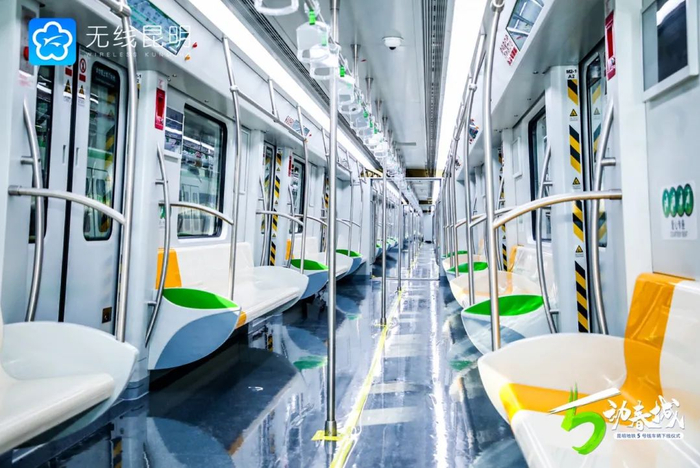“这次的5号线列车从试制到生产完全都是‘昆明造’,采用了很多新技术更加环保。”据昆明地铁5号线车辆总体设计师陈正介绍,列车采用B型车,6节编组,最高运行速度80km/h,最大载客量2094人,不仅富有鲜明的昆明特色,而且具有节能环保、安全可靠、体验舒适等特点。