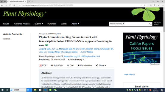 园艺院王长泉教授团队对月季光信号应答研究取得重要进展