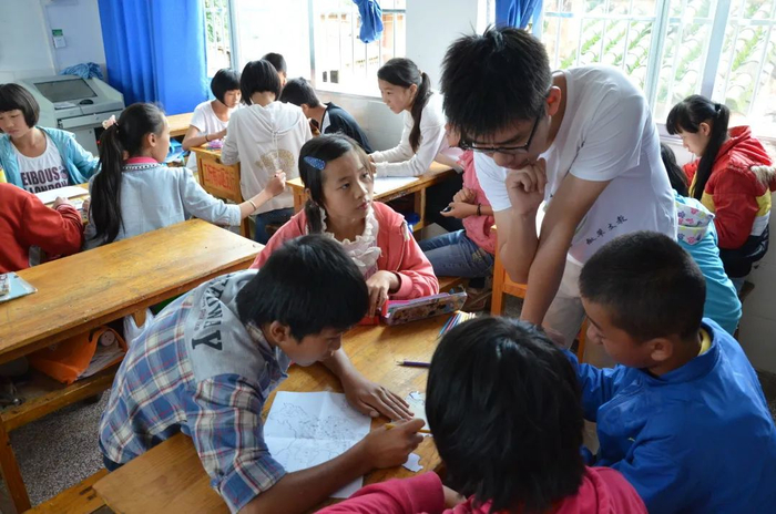 当看着支教团前辈拍下的支教影像,看着照片中孩子们渴求知识的眼睛时,刚上大学的乔译楷萌生了支教的想法。他想去看看那群孩子,去把自己所学教给他们。2014年,乔译楷加入了微草云南支教团,来到了云南昆明玉古村,以一名支教老师的身份和大山里的孩子们“打成一片”。支教的那段日子,他与孩子们结下了深厚的感情。回顾这段经历,乔译楷觉得幸福满满。
