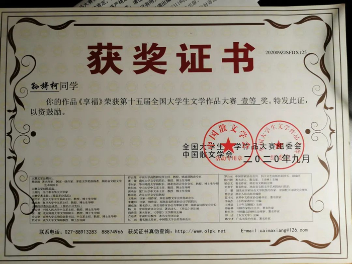 在老师的带领下,大家的学术研究能力不断增强。由班级同学自主申报的校院级课题达41项,大家围绕专业知识开展探究,进行了《诗经》“天命”、温台方言词汇使用、儒家文化、“文学空间”鲁迅“立人”思想研究等中文专业不同角度的课题探究,课题结题率达100%,优秀率达58.33%。