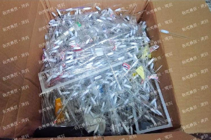 在二楼楼梯口,有一只装医疗废弃物的纸箱,里面装满了细长的塑料管,上面贴着人的名字,很像小唐描述的做胚胎移植的吸管。吸管数量之多难以统计,满满一箱子,估计有四、五百根。