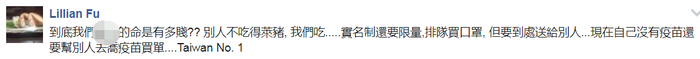 不过,听完俞大㵢“没有转让只是买单”的回应后,台湾网友更生气了。有网友说,“自己命都不要。”“到底我们的命是有多贱??”“……那台湾人什么时候才要开打疫苗?”↓