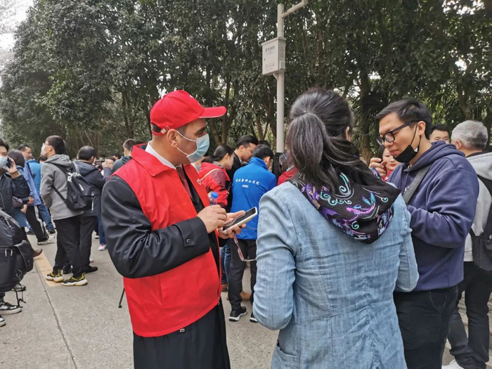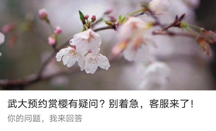 垂枝樱、甘肃桃、紫叶李、椿寒樱、崖樱桃……你会分辨这些花朵吗?还好,有一位特别的志愿者可以给我们讲解——武汉大学生命科学学院教授、爆款公选课“植物世界”主讲老师汪小凡。在这个春天,这位笑称自己是“最了解武汉大学校园植物”的老师也选择报名成为了本次医护人员赏樱专线的志愿者。在前期的培训中,汪老师特意为志愿者们制作了ppt,详细讲解了有关武大樱花的植物学知识。原来,这些在绝大多数游客中统称为“樱花”的花朵,其实来自不同的植物家庭,拥有自己的姓名。老师谈到,自己很希望能够用自己的专业学科知识,为赴约前来的医护人员们带来更具有特色的观赏体验。“这也许能在一定程度上代表武大师生的诚意!”万树珞珈春中,他是遥指美景侃侃而谈的学者,更是助人漫步春山细辨芳华的志愿人。