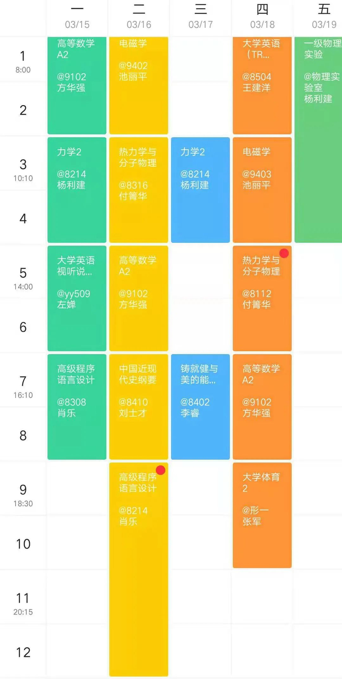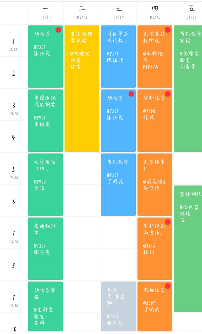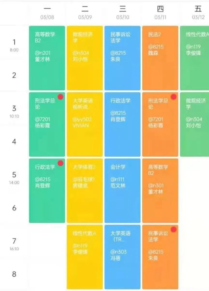 被颜色填满的课表可不能一秒记忆
