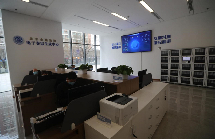 该中心主要有三大功能,分别是纸质卷宗集中保管、电子卷宗统一加工、案件信息数据集成。在审判系统加挂对接电子档案,可实现线上立案、线上庭审、线上阅卷、线上送达等全流程线上办公,可以大大提高审判质效,也可以节约涉诉市场主体的时间成本和经济成本。