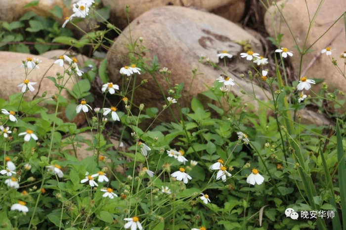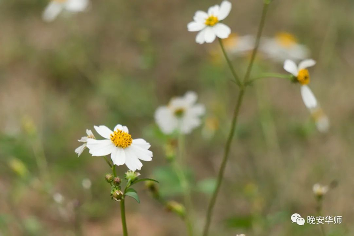 校花名片:鬼针草四季开花,生如夏花,绚烂而素雅。它常被误认为是一朵花,其实不然。鬼针草由许多小花组成,舌状花呈奶白色,轻轻簇拥着中心的橘黄管状花团。微风吹过,绣球般的小果实便离去,蜕变成长,孕育新生,不起眼但让人钦佩。在阳光最饱满的季节里,她于山野间灿烂怒放;等到百花凋零时,又能在路边、河畔探出头来,给人以生命的鼓舞。“天下谁人不识君”的花语便是她的真实写照。