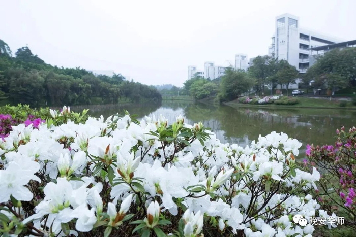 校花名片:质本高洁无多彩,暗香胜似寒梅开。白衫绿裙钗影动,芬芳沁透几君怀。白花杜鹃枝繁叶茂,绮丽多姿。不同于锦绣杜鹃绽放时的热闹喧腾,洁白的她显得更加恬静文雅。白花杜鹃清丽脱俗,花语象征着被爱的欣喜。