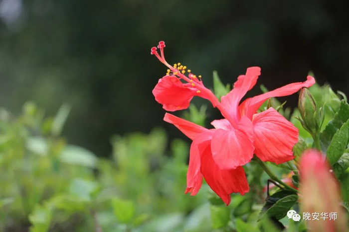 校花名片:屈原《九歌·东君》曰:“暾将出兮东方,照吾槛兮扶桑。”朱槿花又称扶桑,花颜色呈现深红色,大如蜀葵,花蕊长于花叶,上缀金屑,日光所烁,疑若焰生。朱槿美在花大色艳,大蕊小蕊相连,仿佛在比喻热情的外表下也有十分细腻的心,因此它的花语被阐释为纤细美、体贴美、奇妙的美、永葆清新之美。