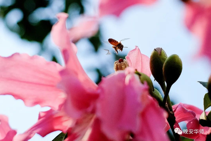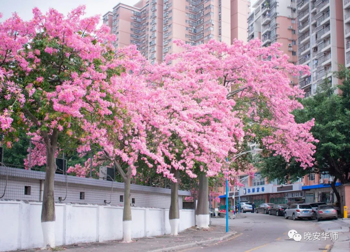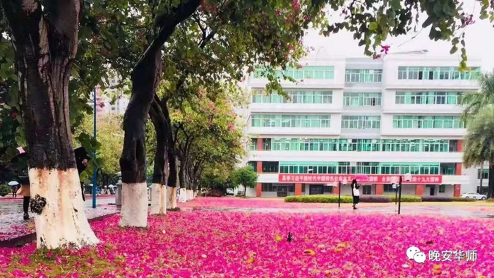 校花名片:粉如胭脂白如雪,娇艳澄澈似美人。一树烂漫的粉,一幅绝色的画卷,是你我最美好的校园记忆。旖旎粉色随万千光影一同变幻,繁花微香,芳华丝毫不减。校道上铺撒的粉白花瓣,见证着华师学子早起暮归不懈拼搏,枝头边盛放的异木棉,祝福着华师学子前程似锦。
