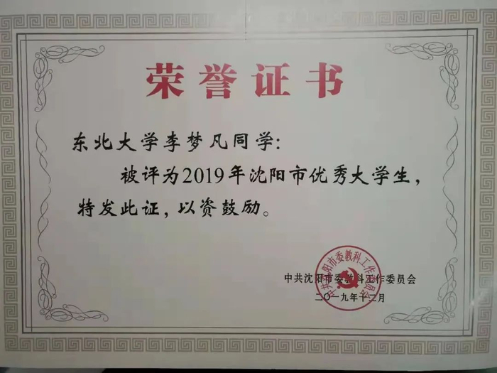 来到东北大学,看到校门口的八字校训:自强不息、知行合一,李梦凡默默在心里埋下了一个想法:未来要走得更远。于是,她早出晚归,图书馆自习室、实验楼一待就是一整天,大创竞赛科研一做就是三年。通过自身踏实认真的学习,她的成绩始终保持在班级前列,连续三年获得一等奖学金。星光不负赶路人,2020年李梦凡如愿直博华中科技大学。