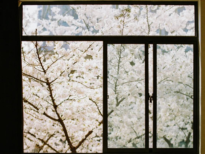 “春天时,坐在樱花教室窗前画素描,可以观察出每朵樱花不一样的姿态和美。到了樱花谢了的季节,百叶窗上可以映出樱花树的枝干,也是另外一种美。”