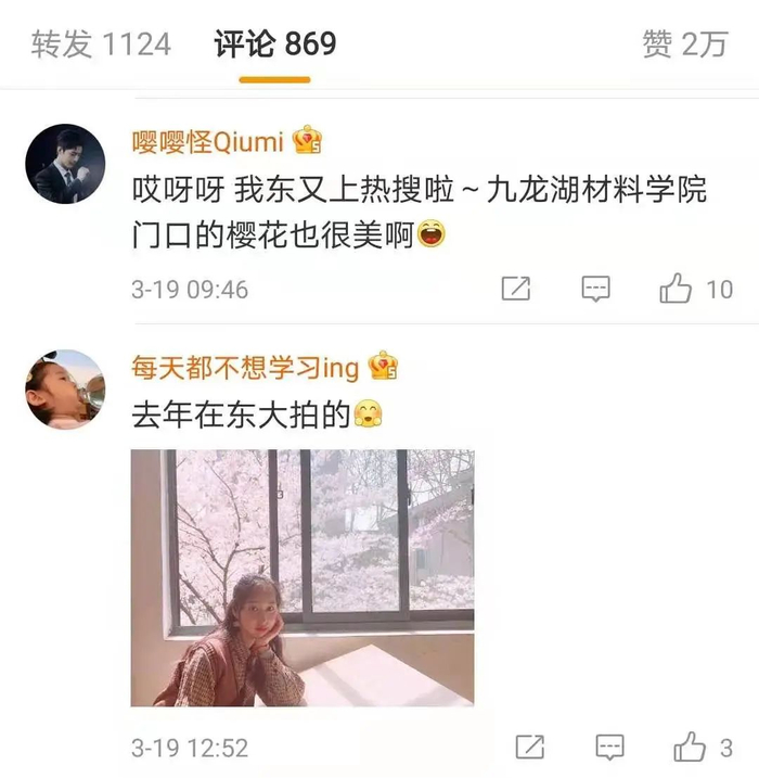 晓南,你还记得前天官微发布的东大樱花么?
