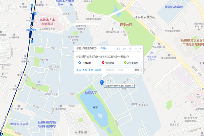 (2)地点:新疆大学校本部离退休职工服务中心一楼大厅(从延安路瑞达经贸大厦旁新疆大学东南门进入)。