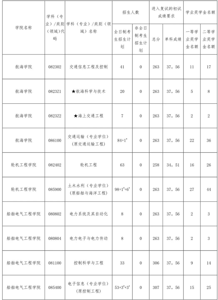 大连海事大学2021年全国硕士研究生招生考试考生进入复试的初试成绩基本要求
