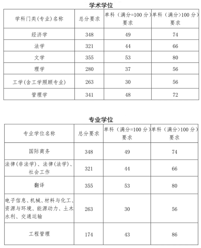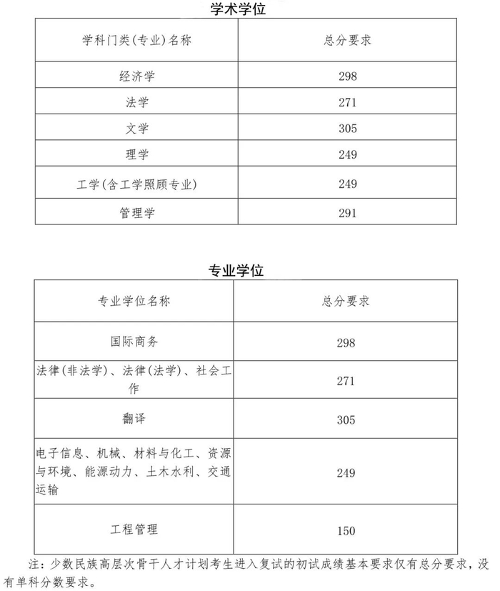工商管理硕士(MBA)、公共管理硕士(MPA)进入复试的初试总成绩要求