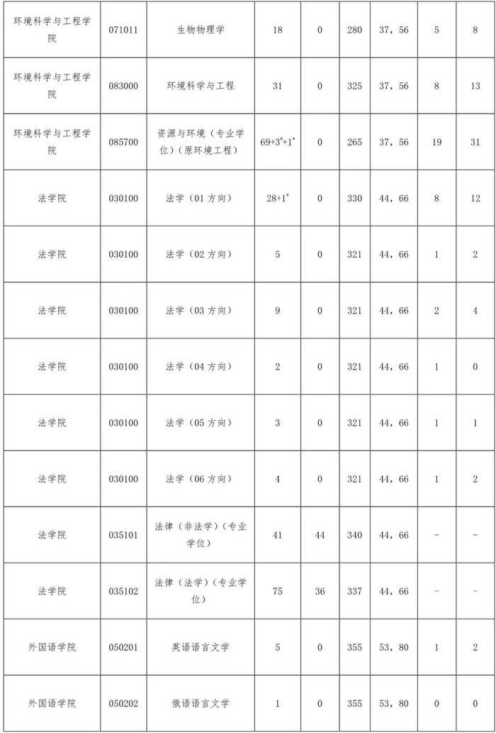 分专业招生人数、进入复试的初试成绩基本要求、学业奖学金名额