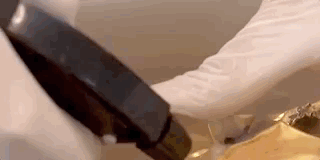 粘裹着的土和附着物取掉后,金箔片被一点点展开,再经过清洗,金面具的形象就慢慢显露出来了。