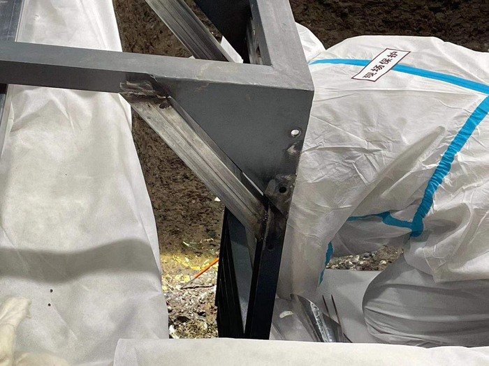 澎湃新闻探访现场时,工作人员正在对一座70厘米高的大口尊进行清理、加固。“它是青铜器,很大,又很重,里面积压了泥土,叠压情况也比较复杂,在它的下方还有不少文物与其有接触。”前述工作人员称,大家清理该文物时尤其小心。