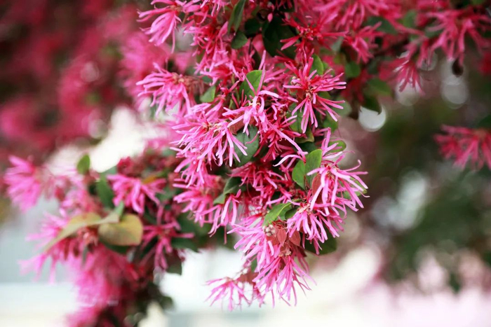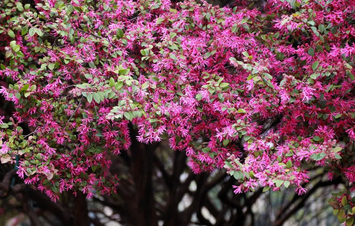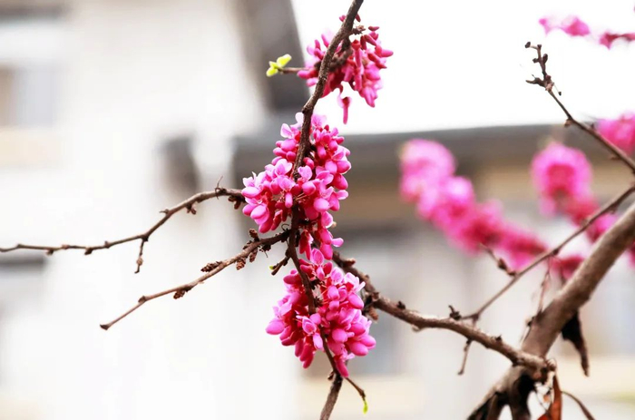 红花檵木是丁家桥校区最有代表性的植物景观,历经几十年,已将紫红色的艳丽近乎演绎成了传奇。每近清明,它抖擞起乔木之姿,将春天的色彩逐渐浓缩,再以大写意的手法喷薄而出。