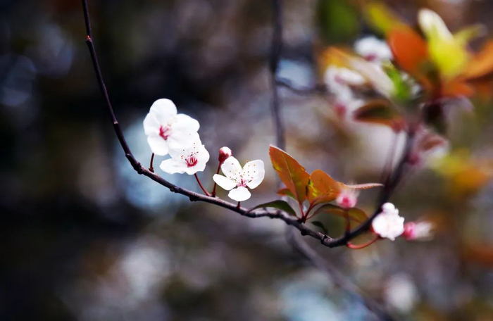 紫叶李,又名红叶李,叶色常年暗红,是春可观花秋可观叶的乔木。花虽繁但色不及樱,果虽多但甜不及李,叶虽红但赤不及枫,但这并不妨碍它的独特、它的美丽。