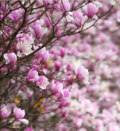 白玉兰的花期与梅花相近,在梅花山赏梅时便可一同观赏。二乔玉兰则开遍南京城的大街小巷。九龙湖校区机械学院楼下有数棵二乔玉兰,花貌甚佳,尤显高雅。