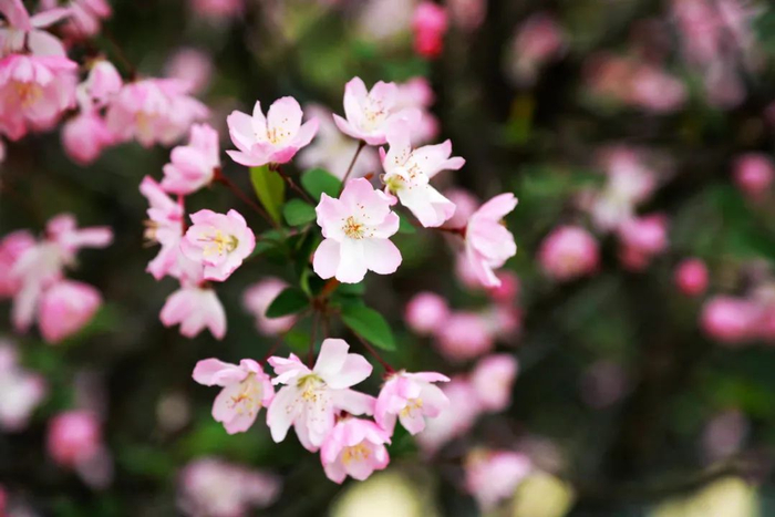 古代女子有鬓边插海棠花的习俗,海棠也就成了美人的代名词。“枝间新绿一重重,小蕾深藏数点红”,海棠的美略带羞涩,更让人爱怜在心。