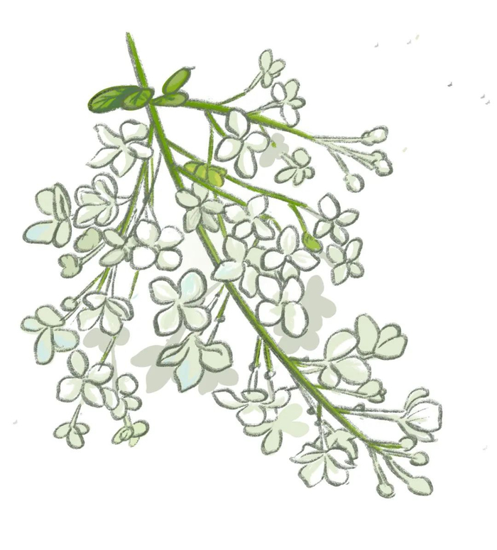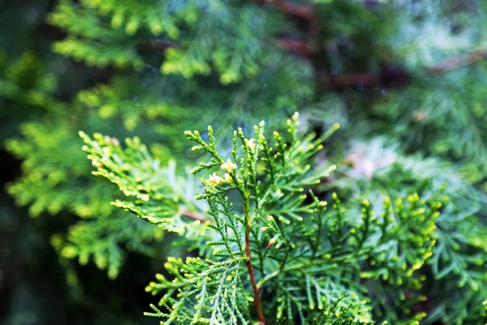 松柏属于裸子植物,它们的球花与被子植物的花全然不同。海棠花开的时节,侧柏的掌叶末梢便有二三毫米如涂了金粉,微微闪光,它并非枯叶,而是新生的雄花,用手轻触,很易掉落,指间轻碾,即为粉末,散发出好闻的柏木香。