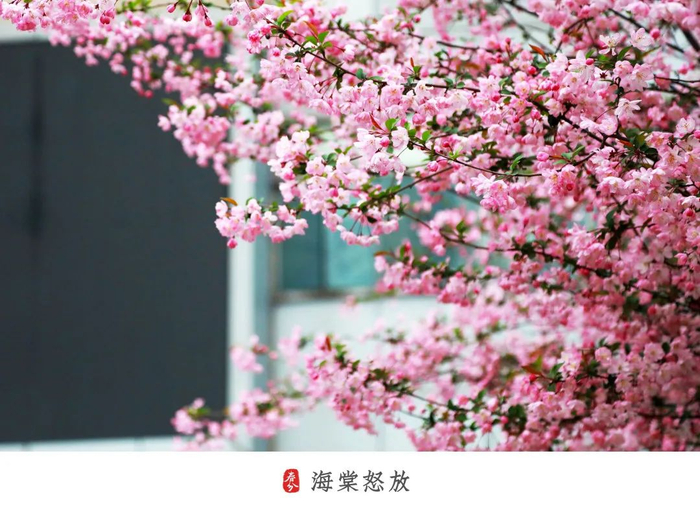 丁家桥校区的中心花园到生医实验室一路皆是海棠的粉花,妖娆曼妙。想着苏东坡的诗句:“东风袅袅泛崇光,香雾空蒙月转廊。只恐夜深花睡去,故烧高烛照红妆”,眼前仿佛真的有仙子走来,一道品茗惜春。