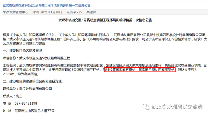 据悉,即将开工的5号线二期工程全称为武汉市轨道交通5号线起点调整工程,2021年1月,武汉地铁集团官网发布5号线南延线建设调整工程南延两站环评公示。