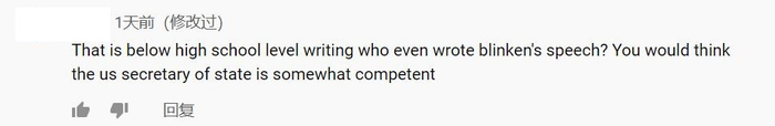 “写这个发言稿的怕是高中没毕业吧?布林肯能把稿子念成这样已经不错了。”