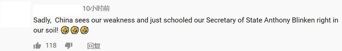 “很不幸,中国看到了我们的弱点,并在我们的地盘上教育了我们的国务卿布林肯。。。。。。”