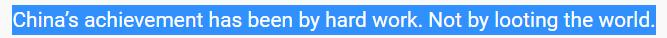 在这位马来西亚人发言的最后,他说:“中国今天的成就,靠的是努力奋斗,从未对这个世界进行掠夺!”