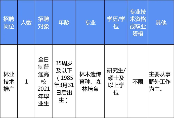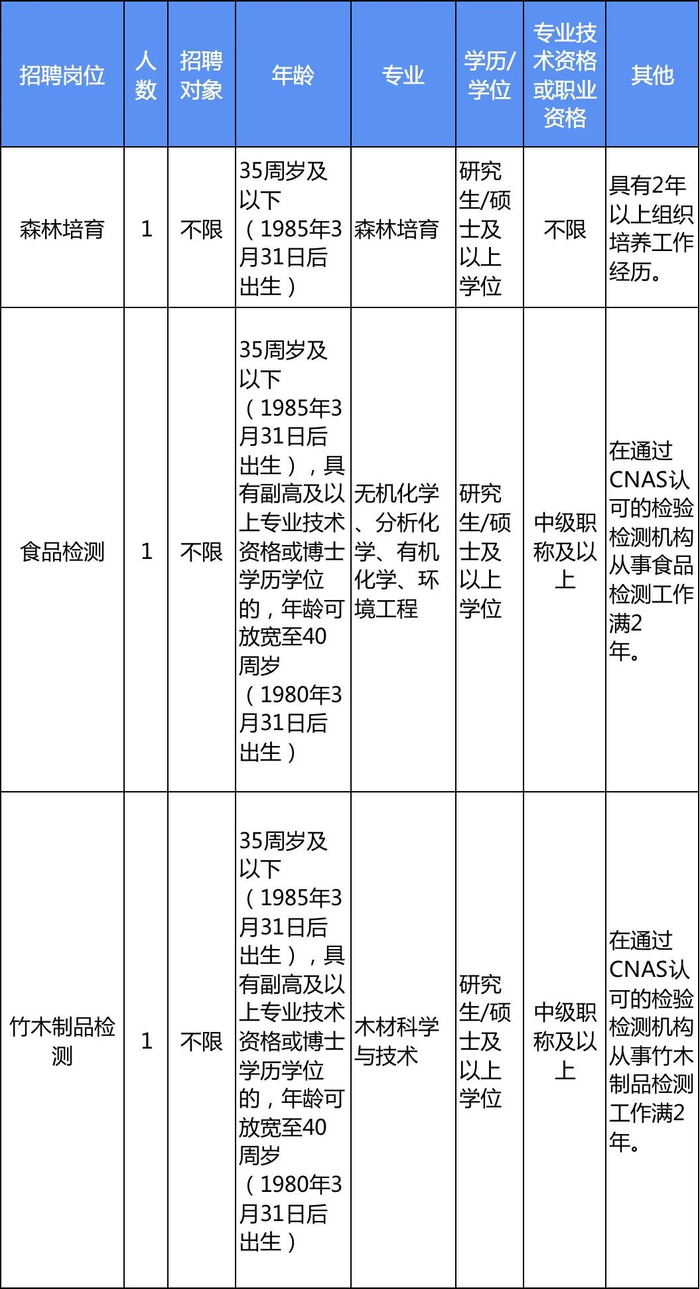 此次招聘的浙江省林业局下属事业单位共4家,6个岗位共6人。