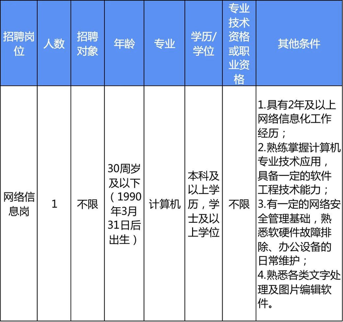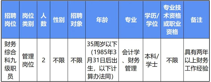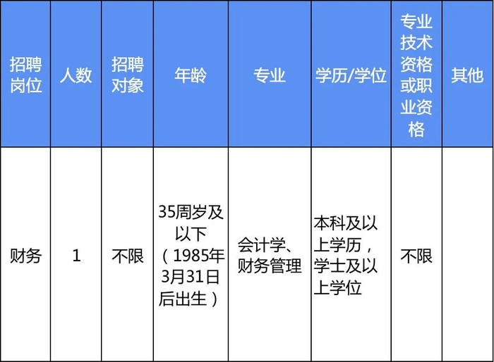 本次招聘需求计划为7个岗位7人。