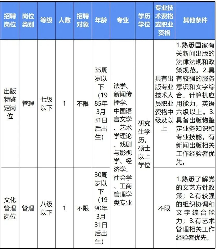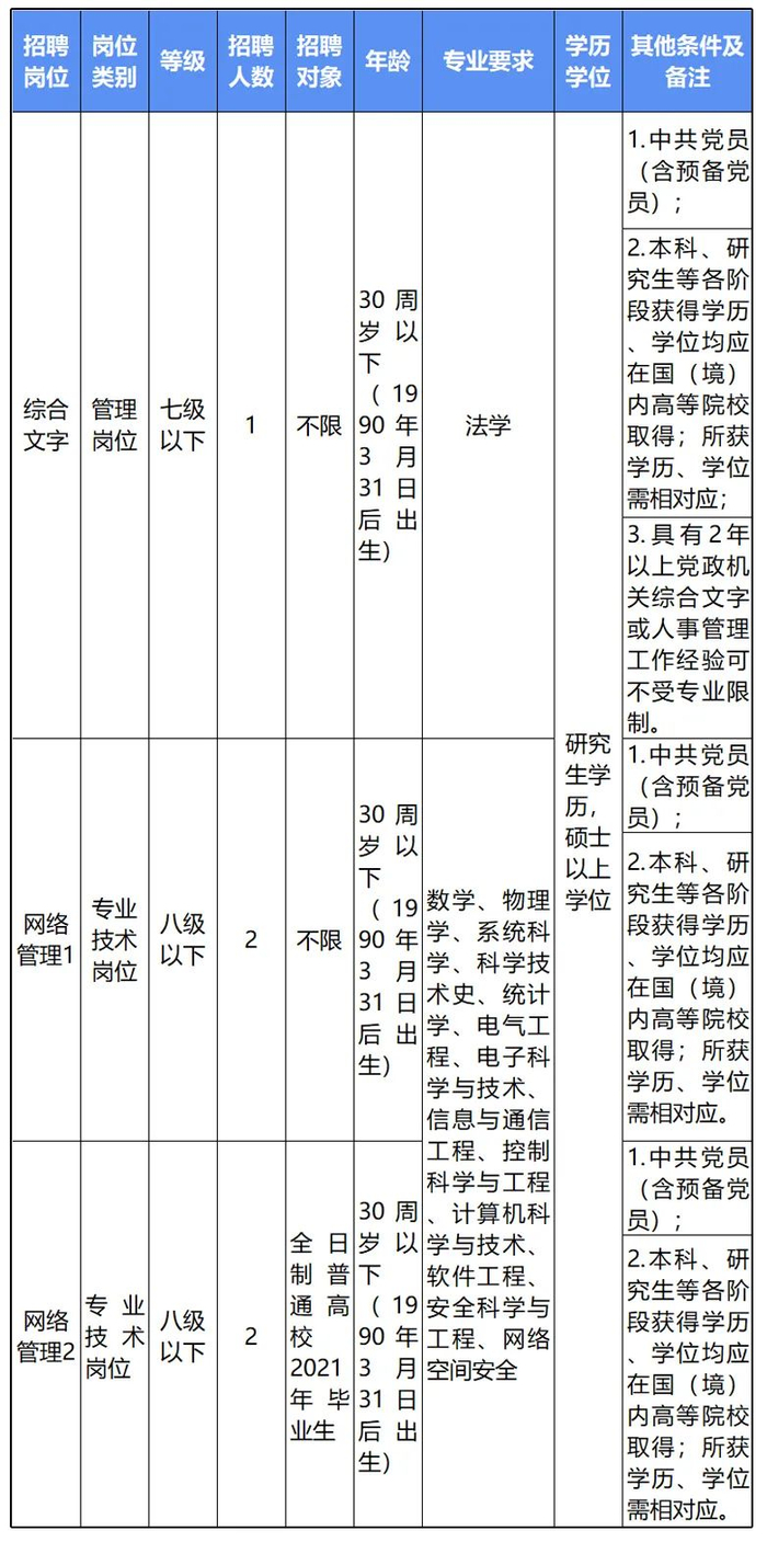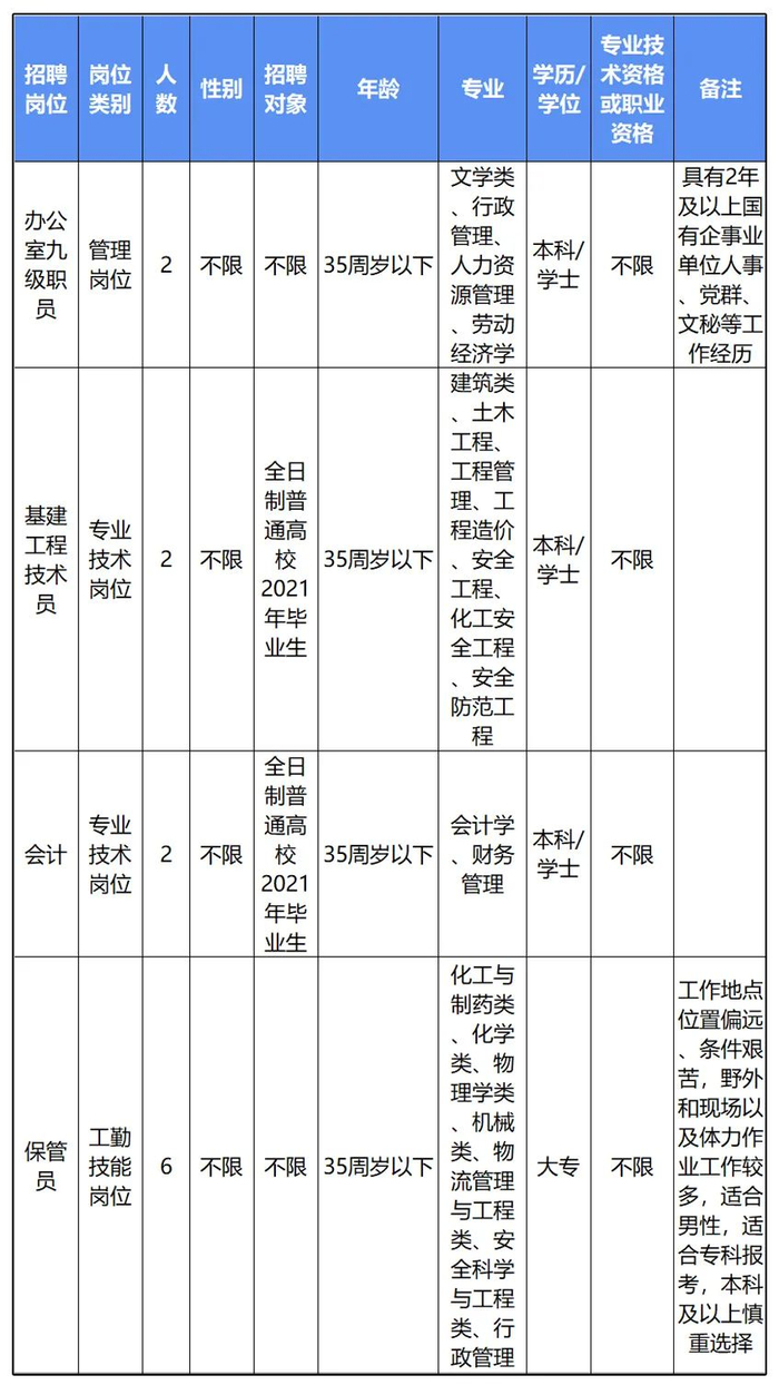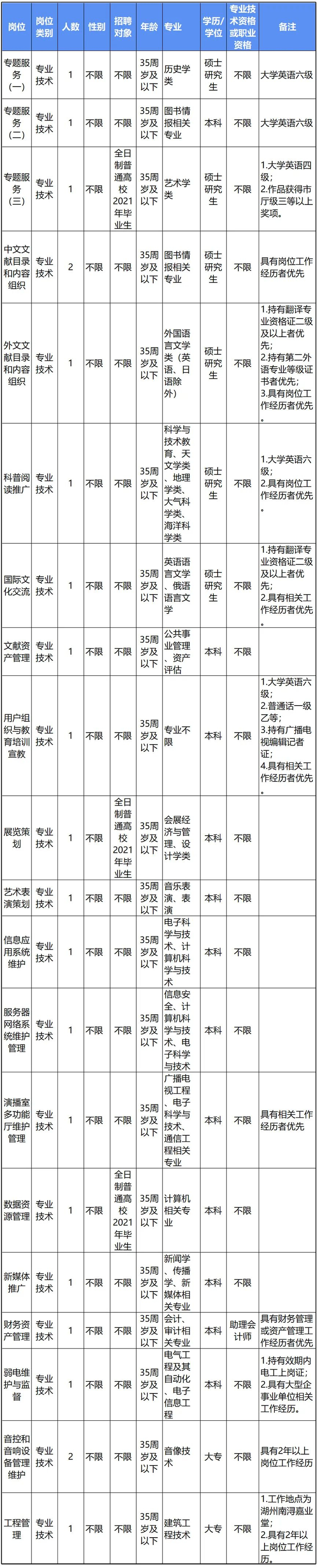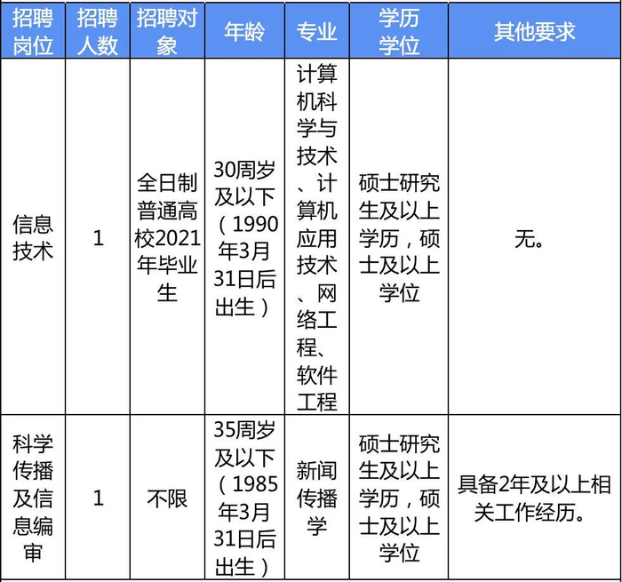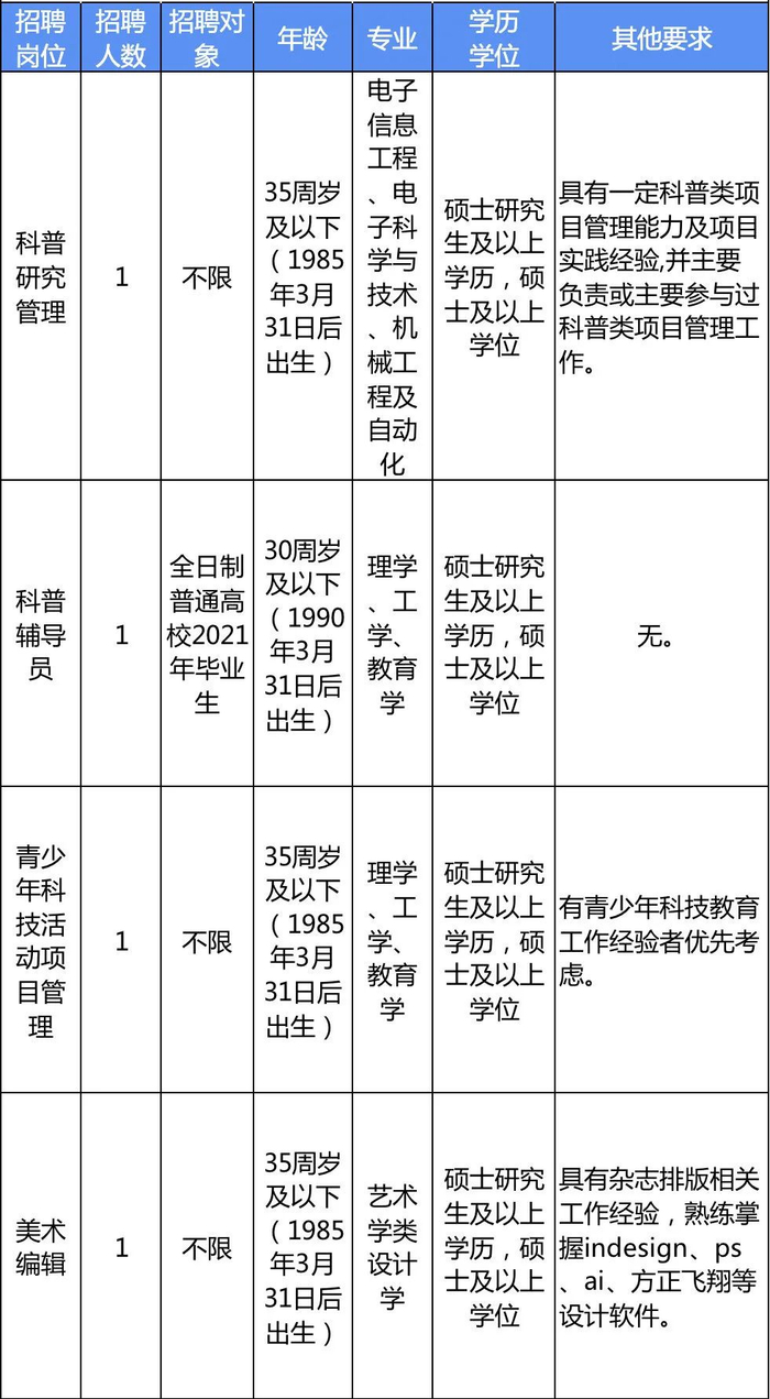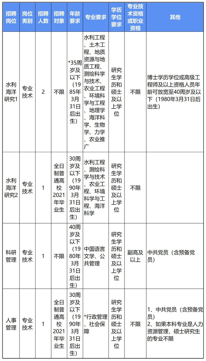 4家事业单位本次共招聘21个岗位34人。