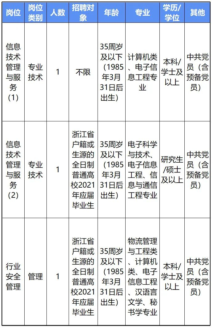 浙江省邮政业安全中心是浙江省邮政管理局下属公益一类事业单位。本次招聘需求为3个岗位共3人。