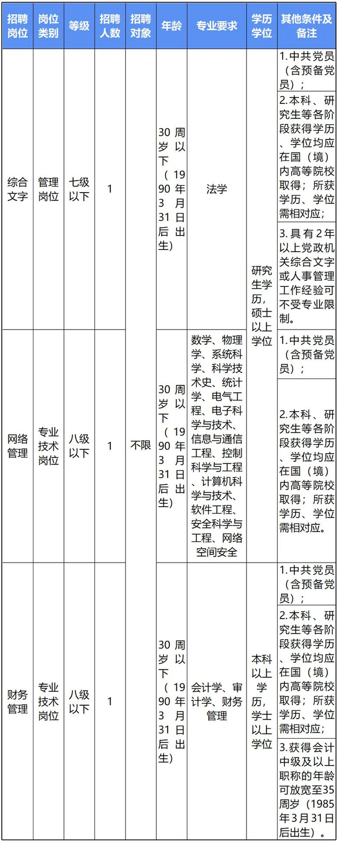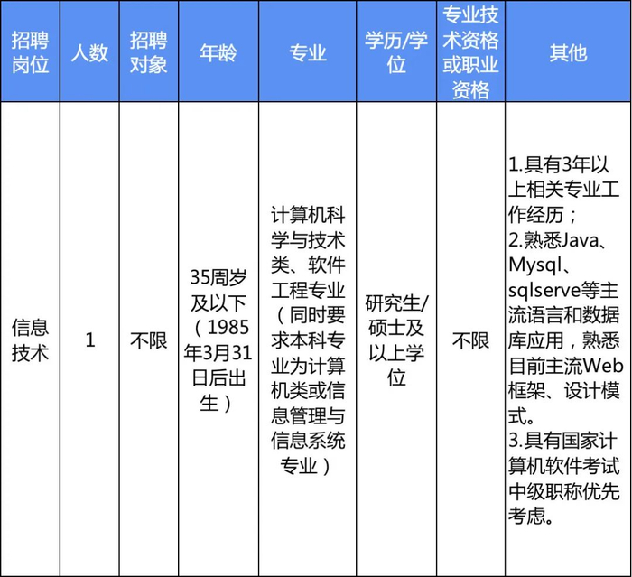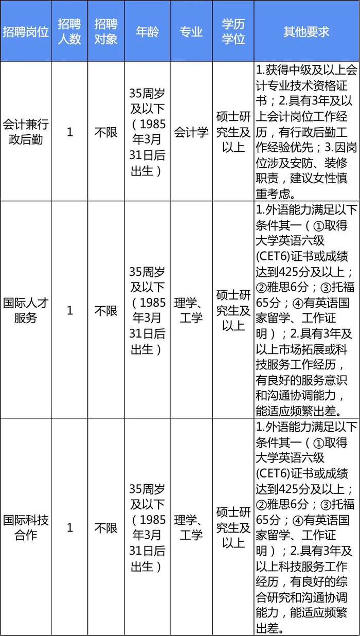 本次招聘需求为3个岗位5人。