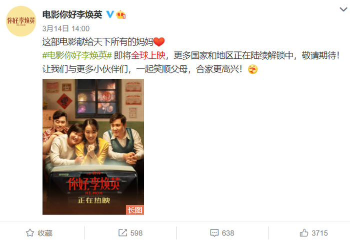 《你好,李焕英》从春节档开始,就在众多黑马影片中一路领先,影片上映短短一个多月的时间里,不断刷新中国影史记录,获得了令人赞叹的成绩。在全球上映之际,如何更好的用亲情对话世界,表达人类共同的情感,我们相信届时《你好,李焕英》会给我们一个满意的答案。