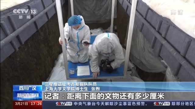 三星堆遗址考古发掘队执行领队、四川省文物考古研究院博士 冉宏林:我们穿戴这种防护服,就是避免我们发掘人员的头发、皮肤碎屑等这一系列东西,掉入到这个坑内,然后污染这个出土文物和相关的样品。