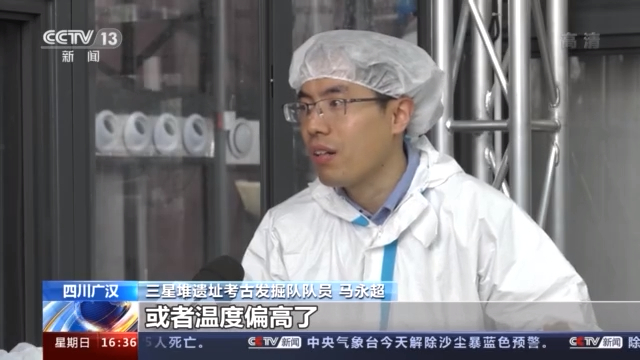 三星堆遗址考古发掘队队员 马永超:偏湿了或偏干了,或者温度偏高了,我们都会采取必要的通风措施,和加湿设施措施。现在我们做的一个保湿措施是每天有至少两次喷水,对这个木匣子表面,还有这个坑壁做一个保水,防止木匣子开裂。