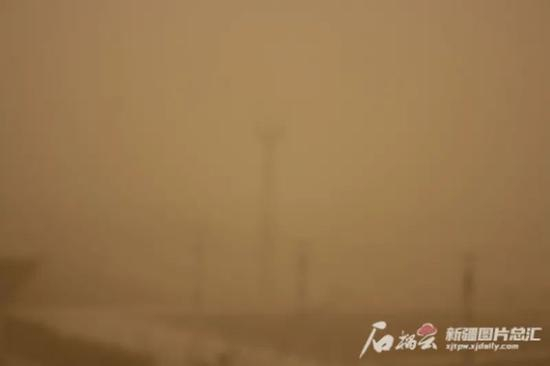 3月16日,若羌县出现沙尘天气。图由若羌县气象局提供。