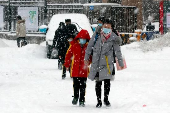 3月17日早晨,乌鲁木齐市,天空继续飘雪,降雪对市民的出行造成了一定的影响。石榴云/新疆日报记者秦鹏摄
