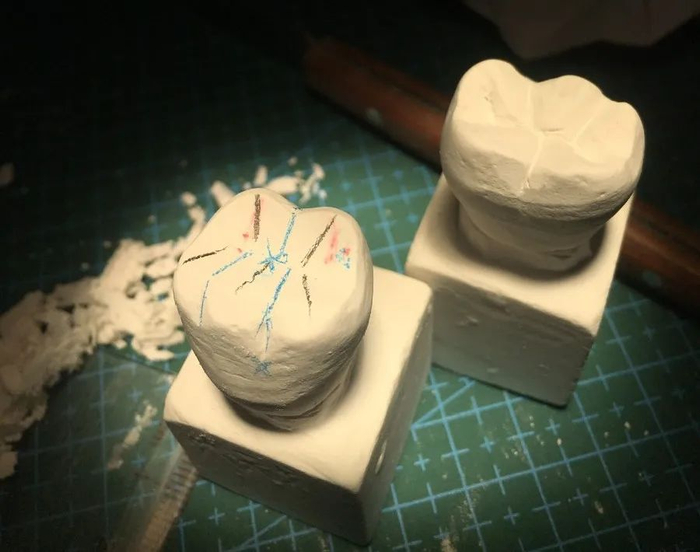 在口腔解剖生理学课程上会学习雕牙,将一个个四四方方的石膏最后雕成一个个形态各异的牙齿,整个过程的体验很神奇。