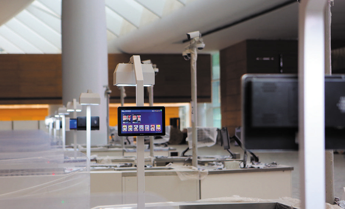 在T1航站楼的一个登机口,记者注意到登机闸道已安装到位,每个闸门侧端上面都立有一个类似IPAD的显示屏。“这是拥有人脸识别系统的自助登机设备。”唐磊解释说,不同于传统方式的人工验票登机,旅客在新机场可以体验到人脸识别的快捷登机服务,从而减少登机排队时间。