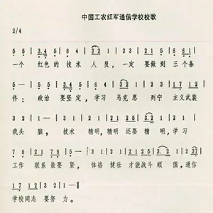 据回忆,学校办学历史上的这第一首校歌是在曾三同志在井冈山担任红军通校政委时编写的。