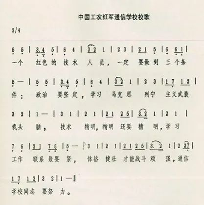 这是西安电子科技大学前身中国工农红军通信学校(以下简称红军通校)的校歌,也是学校办学历史上的第一首校歌。歌词充分展现了革命年代对通信技术人员的基本要求。