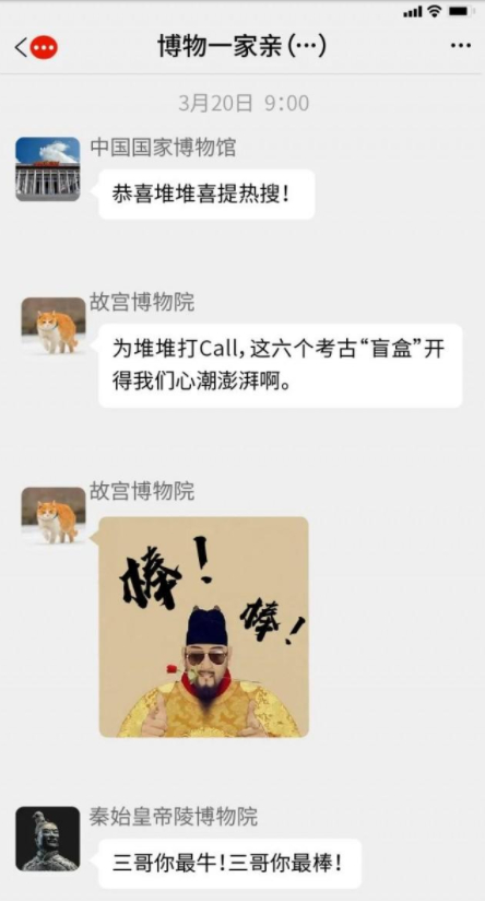 博物馆兄弟们含笑点头,满面春风。互谦之际,大V故宫博物院率先发声: