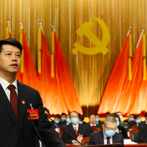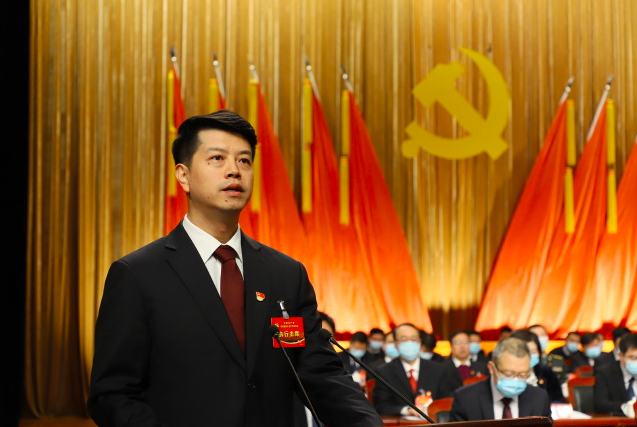 3月21日,中共洪洞县第十五次代表大会开幕,黄巍作工作报告(来源:洪洞融媒)