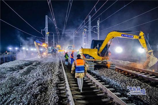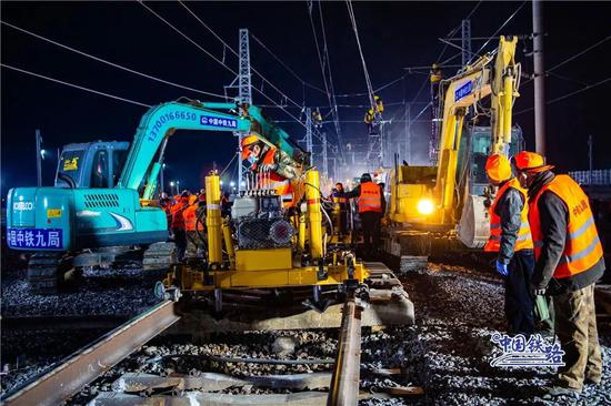 3月18日,在黑龙江省七台河市勃利县境内,随着施工人员将一组无缝钢轨焊接完毕,全国在建的最东高寒高铁——牡佳高铁全线进入冲刺阶段,为今年秋季开通运营奠定基础。